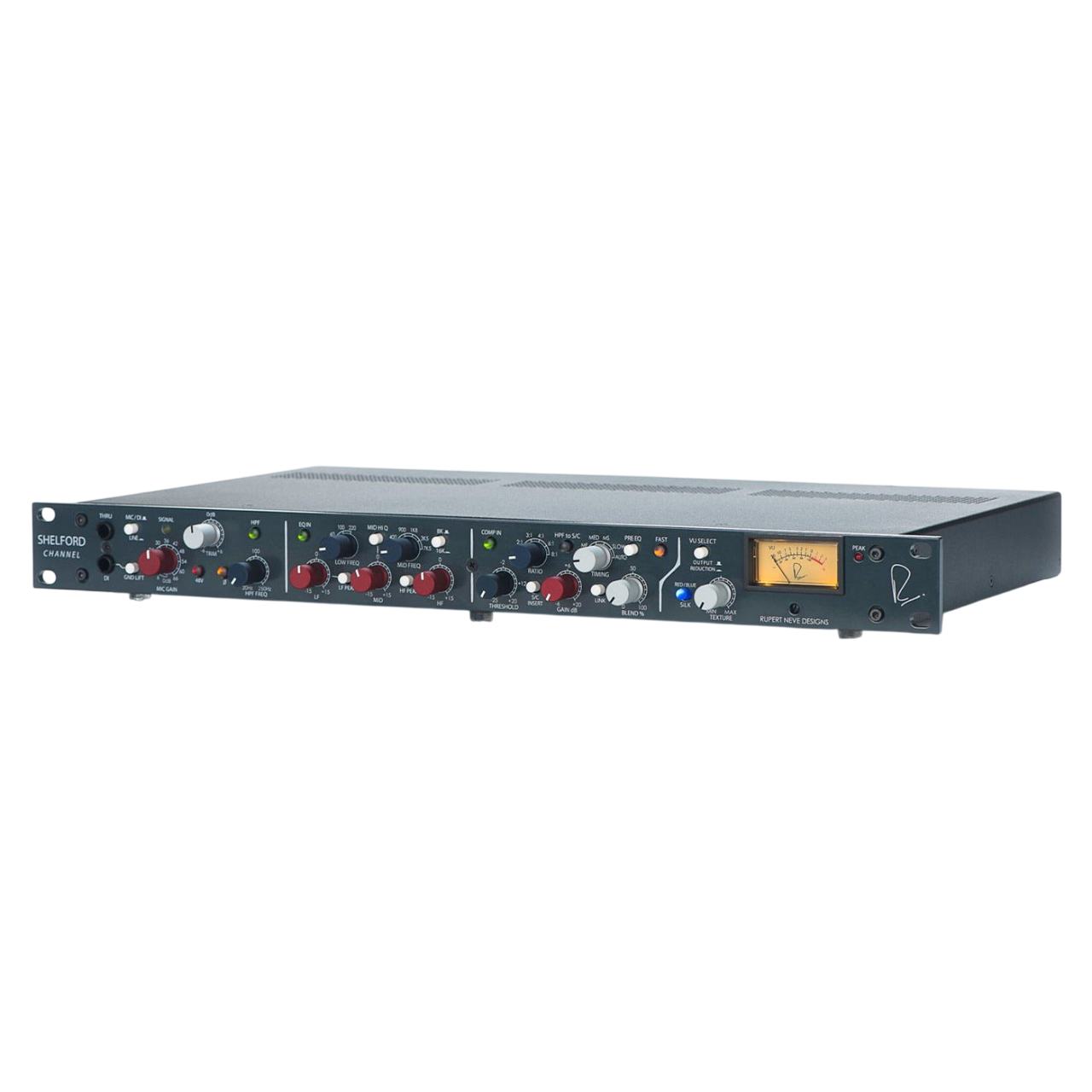 The Rupert Neve Designs 5035 Shelford Channel is a modern take on Rupert Neve’s classic console modules, combining a transformer‑gain Class‑A mic preamp, a musical inductor EQ, and a tone‑rich diode‑bridge compressor into a single high‑end channel strip. It’s built around the same design philosophies that shaped legendary units like the 1073 and 2254, but refined with contemporary features such as variable Silk saturation and a custom transformer output stage for added harmonic control. The result is a versatile, vintage‑inspired channel that delivers depth, warmth, and character while maintaining the precision and reliability expected in a modern studio.